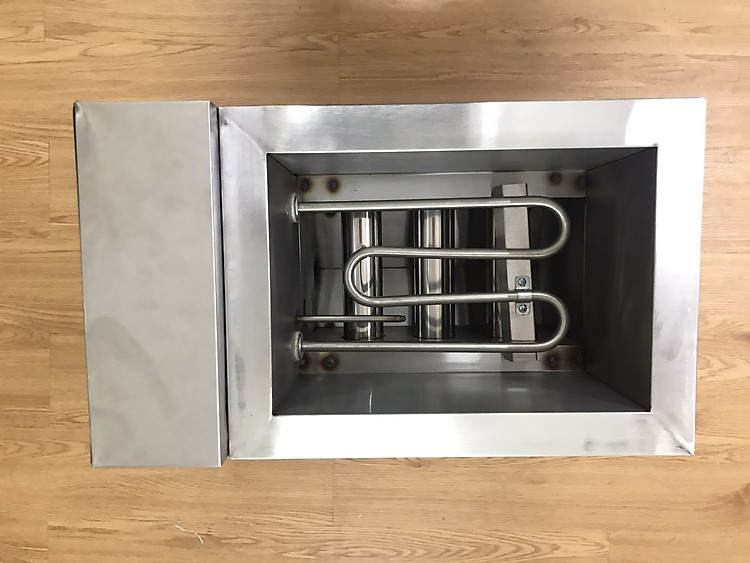 Phía dưới của hộp điều khiển là van xả nước và van xả dầu. Sau khi chiên xong các van này sẽ được sử dụng để lấy dầu ra và vệ sinh bếp.