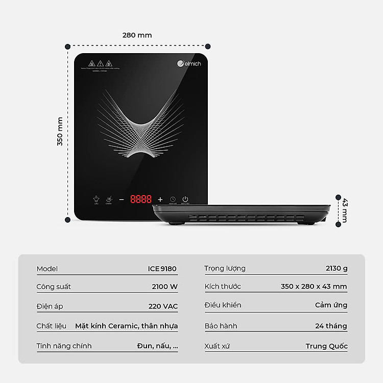 Bếp điện từ Elmich ICE-9180L (Phiên bản nâng cấp 3 của bếp ICE-3878OL) - Hàng chính hãng