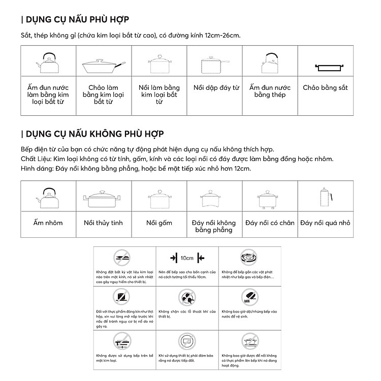 Loại nồi phù hợpSắt, Thép không gỉ (chứa kim loại bắt từ cao), đường kính 12-26cm