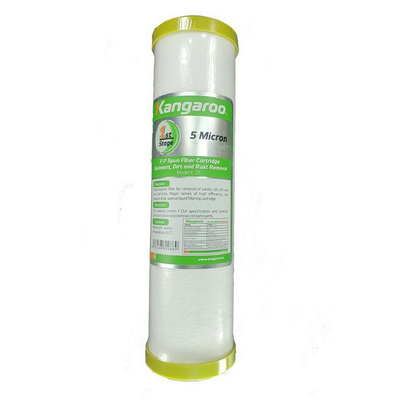 Combo bộ 03 lõi lọc nước Kangaroo số 1 - Cam kết chính hãng phân phối. Lắp vừa hầu hết các loại máy lọc nước hiện nay. Dùng lọc nước đầu vào nên thời gian thay thế thường xuyên, 3 tháng với khu vực nước chất lượng thấp, 6 tháng với khu vựa trung bình và 12 tháng với điểm nội thành chất lượng nước đầu vào tốt. Lõi lọc nước Kangaroo số 1.1 Sợi PP tạo khe hở 5 Micron ​ Nguyên liệu: Sợi PP có khe lọc 5 micron ⊹ Chức năng: Loại bỏ bùn đất, rỉ sét, các loại tạp chất thô, kim loại nặng ... có kích thước > 5 micron ⊹ Tuổi thọ: 3 ~ 6 tháng (~ 18.000 lít)