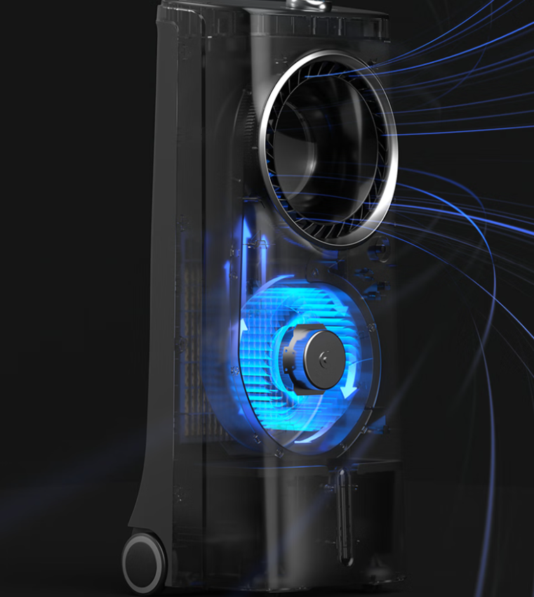 - Thông qua hệ thống cấp gió xoáy, hệ thống làm mát vật lý bằng rèm ướt và tạo ẩm diễn ra đồng thời, giúp làm mát đồng thời bổ sung độ ẩm, để bạn tránh cảm giác khô hanh.