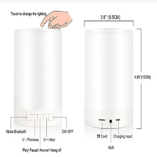 Loa bluetooth Smart Music Lamp đèn cảm ứng 7 màu với thiết kế độc đáo hình trụ cùng hệ thống đèn LED cảm ứng ở loa rất đẹp mắt.