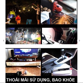 - Với bộ kích điện công suất 3000W thì đáp ứng được các nhu cầu sài điện khác nhau: bóng đèn, quạt, tivi led, điều hòa, máy bơm, ấm siêu tốc...khi sử dụng các sản phẩm, bạn cần xem công suất của thiết bị đó hoặc tổng công suất của các thiết bị có vượt quá công suất của bộ đổi điện hay không?