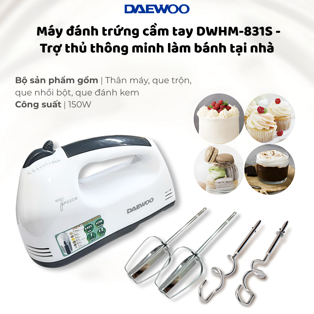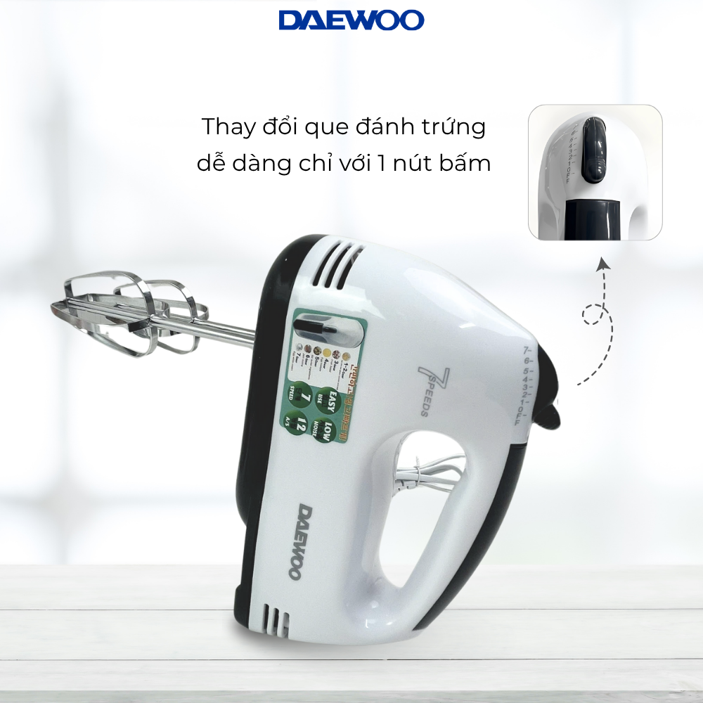 Máy Đánh Trứng Daewoo DWHM-318 có thiết kế gọn nhẹ với tay cầm chắc chắn để bạn sử dụng dễ dàng mà không bị mỏi tay khi sử dụng lâu. Các bộ phận dễ dàng tháo rời và vệ sinh được trong máy rửa chén.