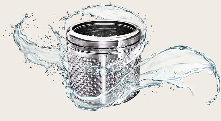 Công nghệ TurboDrum cho phép lồng giặt và mâm giặt quay ngược chiều nhau, tạo ra dòng nước xoáy mạnh mẽ.