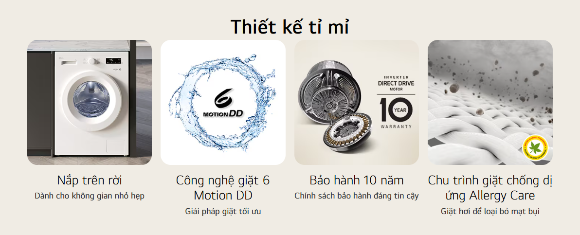 *Hình ảnh sản phẩm chỉ mang tính minh họa và có thể khác với sản phẩm thực tế. Máy giặt sấy LG Inverter giặt 9 kg – sấy 5 kg FB1209D5W kết hợp cả giặt và sấy trong cùng một thân máy, giúp tối ưu diện tích cho căn hộ hoặc phòng giặt nhỏ. Gam màu đen sang trọng cùng các đường nét tối giản dễ dàng kết hợp với nội thất hiện đại. Kích thước gọn, nắp trên ới kệ hay âm tủ mà không bị vướng.Động cơ Inverter Direct Drive êm ái, bền bỉTruyền động trực tiếp loại bỏ dây curoa nên máy vận hành ổn định, giảm rung ồn và hao mòn theo thời gian. Động cơ Inverter tối ưu công suất theo lượng đồ giặt, từ đó tiết kiệm điện nước nhưng vẫn đảm bảo hiệu quả làm sạch. Công nghệ giặt 6 Motion DDLồng giặt trên mô phỏng sáu chuyển động chuyên sâu như nhào, chà, nén, đảo, quay và lắc, nhờ đó bột giặt/dung dịch giặt thấm sâu vào sợi vải, đánh bật vết bẩn tốt hơn mà vẫn dịu nhẹ với chất liệu. Quần áo sau giặt giữ phom dáng, hạn chế xù lông và bạc màu. Chu trình giặt chống dị ứng Allergy CareAllergy Care trên sử dụng nhiệt/giặt nóng kết hợp chuyển động lồng tối ưu để loại bỏ tác nhân gây dị ứng như bụi mịn, phấn hoa, vi khuẩn bám sâu trong sợi vải. Đây là lựa chọn lý tưởng cho gia đình có trẻ nhỏ, người cao tuổi hoặc người có làn da nhạy cảm, giúp yên tâm khi mặc trực tiếp sau giặt. Công nghệ hơi nước Steam giảm nhăn, diệt khuẩnHơi nước nóng được đưa vào lồng giặt giúp làm mềm sợi vải, làm phẳng nếp nhăn và hỗ trợ loại bỏ tới 99,9% vi khuẩn thường gặp trên quần áo. Nhờ đó, đồ giặt bước ra khỏi máy đã sạch – thơm – ít nhăn, rút ngắn thời gian là ủi. Tính năng vệ sinh lồng giặt Tub CleanTub Clean tự động làm sạch khoang lồng bằng nước nóng/chu trình chuyên dụng, cuốn trôi cặn bột giặt, nấm mốc và mùi khó chịu tích tụ lâu ngày. Duy trì thói quen chạy Tub Clean định kỳ giúp lồng giặt luôn sạch sẽ, kéo dài tuổi thọ máy và bảo vệ quần áo khỏi tái bẩn. Smart Diagnosis xác định lỗi nhanh chóngKhi phát sinh sự cố, Smart Diagnosis cho phép máy truyền mã trạng thái qua âm thanh/ứng dụng để kỹ thuật viên hoặc trung tâm hỗ trợ nhận diện vấn đề tức thì. Từ đó rút ngắn thời gian chẩn đoán, hạn chế chi phí sửa chữa không cần thiết và giúp người dùng chủ động xử lý các lỗi đơn giản tại nhà. Kết nối thông minh LG ThinQ (Wi-Fi)Ứng dụng LG ThinQ giúp điều khiển máy từ xa, theo dõi tiến trình giặt sấy theo thời gian thực, nhận thông báo hoàn tất và tải thêm chương trình giặt phù hợp mùa vụ (đồ len, đồ thể thao, chăn mỏng…). Trải nghiệm giặt sấy trở nên chủ động và tiện lợi ngay cả khi bạn vắng nhà. Dung lượng giặt 9 kg – sấy 5 kg cho gia đình 3–5 ngườiKhối lượng giặt 9 kg đáp ứng trọn vẹn đồ bẩn của cả nhà trong một mẻ; khả năng sấy 5 kg giúp bạn xử lý nhanh quần áo cần khô ngay khi thời tiết ẩm ướt. Sự kết hợp giữa công nghệ giặt chuyên sâu, chăm sóc dị ứng và tiện ích thông minh khiến LG FB1209D5W trở thành lựa chọn “tất cả trong một” đáng tin cậy cho không gian sống hiện đại. Với thiết kế hiện đại, công nghệ giặt tiên tiến, kết nối thông minh và khả năng giặt – sấy tiện lợi, Máy giặt sấy LG Inverter giặt 9 kg – sấy 5 kg FB1209D5W là trợ thủ đắc lực giúp bạn tiết kiệm thời gian, công sức và không gian sống. Đây chính là lựa chọn lý tưởng cho những gia đình bận rộn nhưng vẫn muốn chăm sóc quần áo tối ưu. |