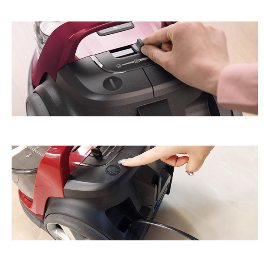 - Ngăn chứa bụi được thiết kế để đổ sạch bụi dễ dàng, hợp vệ sinh bằng một tay và giảm tạo ra đám mây bụi.