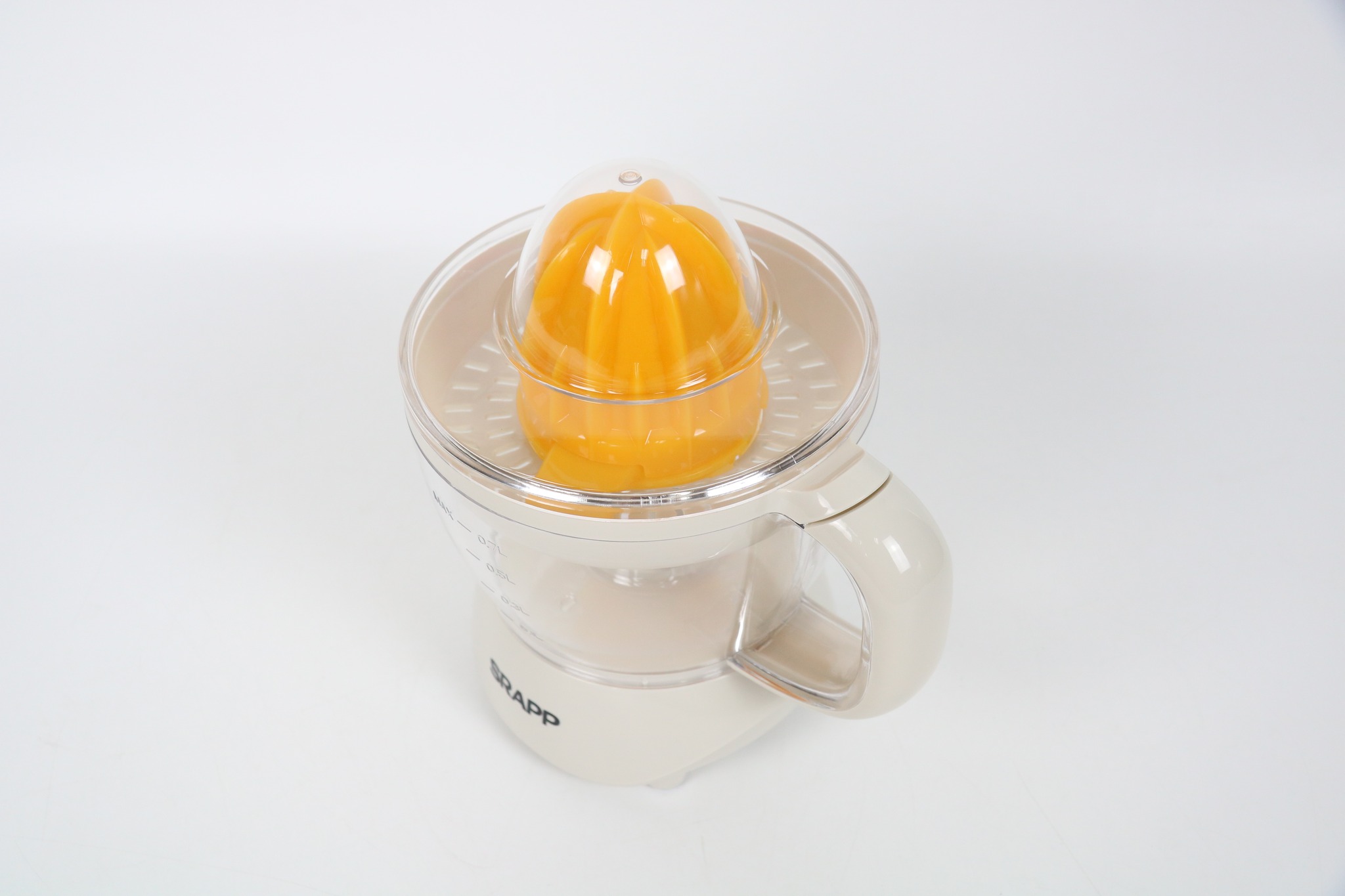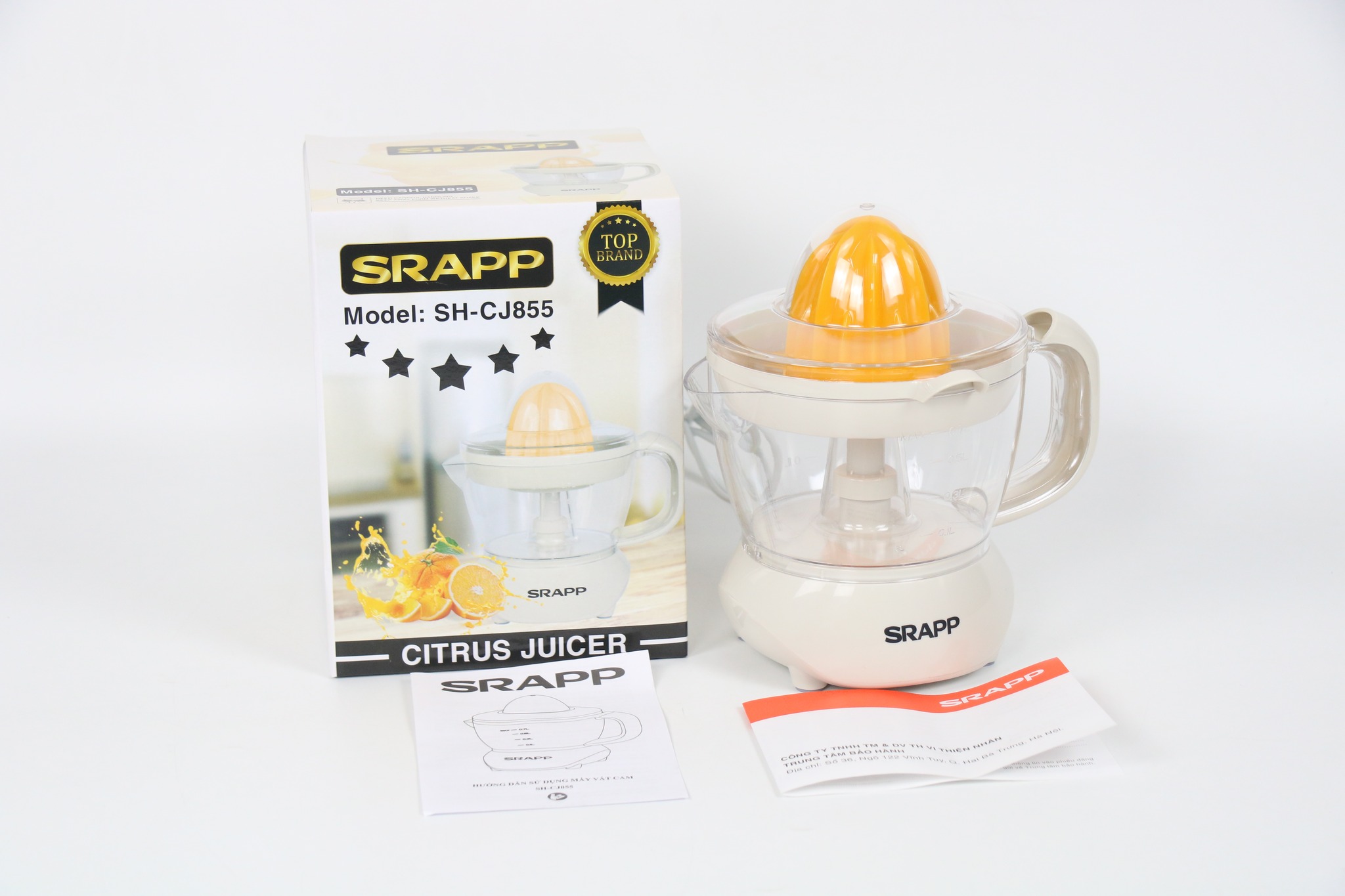 Máy Vắt Cam SRAPP SH-CJ855 có thiết kế kết hợp hai màu cam và be trang nhã, đặc biệt với chóp nón liên tục xoay trái và phải để tách nước trái cây hoàn toàn khỏi vỏ giúp cho chúng ta vắt nước cam thật là dễ dàng và nhanh chóng.