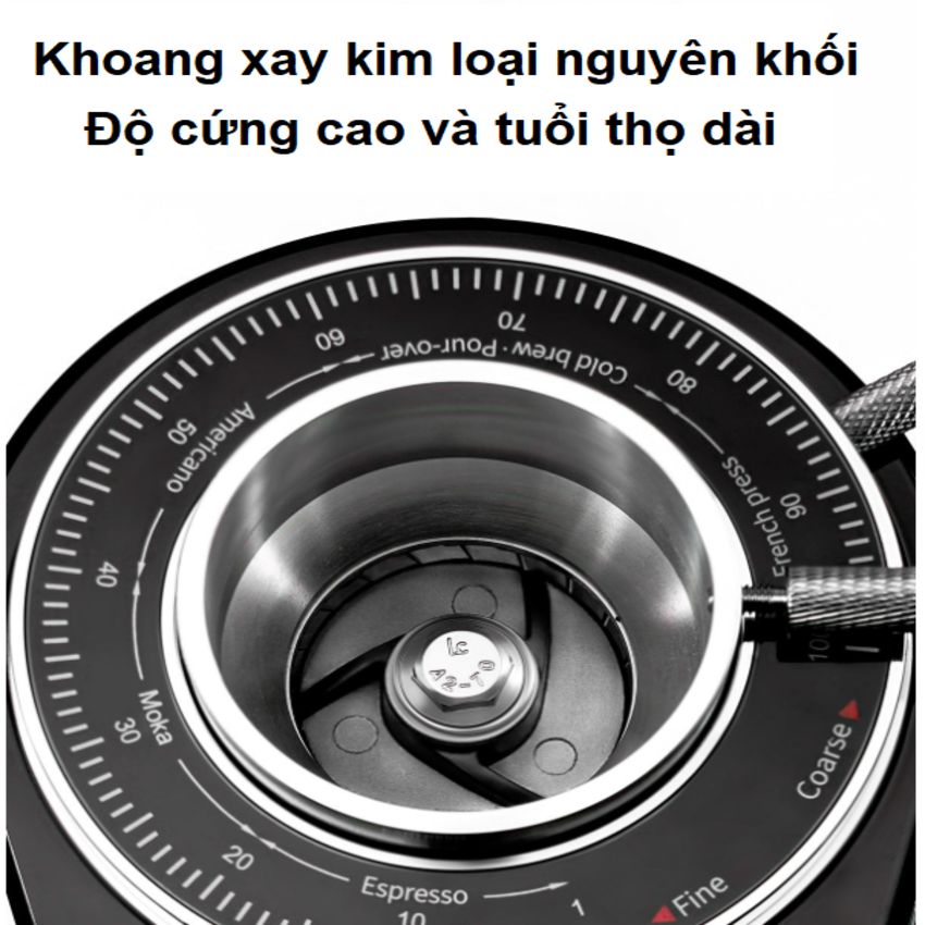 - Đặc biệt, với thiết kế all purposes, lưỡi dao FLAT cho phép máy xay nhiều kích cỡ bột cà phê – Từ Espresso đến Pour-over