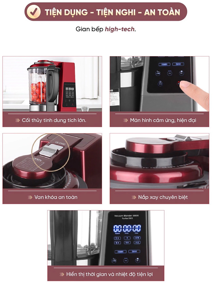 Đặc điểm sản phẩm: Máy xay đa năng chân không KUCHENZIMMER 002769 có khóa an toàn và nắp xay chuyên biệt