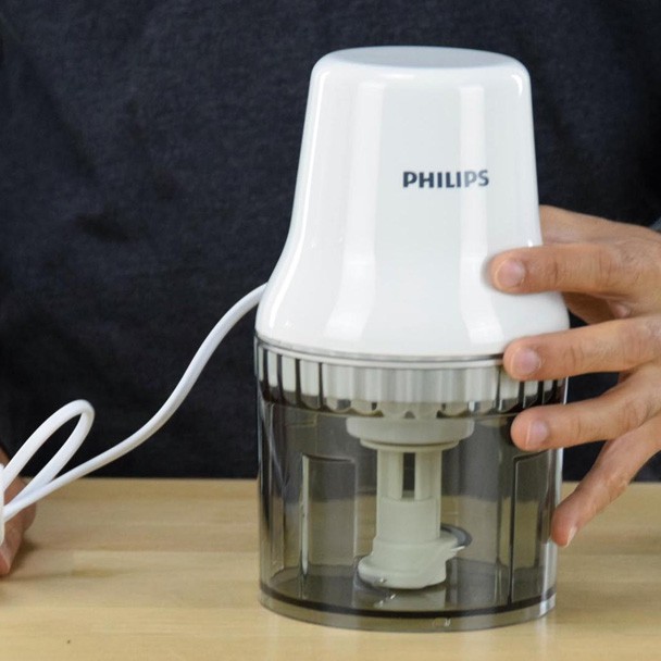 - Máy Xay Thịt Philips HR1393/00 – 0.7 Lít - Trắng hoạt động với công suất 450 W, cùng lưỡi dao Inox 2 lưỡi sắc bén, giúp xay nhuyễn, mịn nhiều loại thực phẩm như: thịt, cá, tôm, cua; các loại gia vị như: tỏi, ớt; các loại rau quả,… Lưỡi dao được làm bằng chất liệu thép không gỉ, chịu sự mài mòn cao, không bị oxy hóa, nên rất an toàn cho sức khỏe người dùng. Máy vận hành với cơ chế vô cùng dễ dàng, chỉ cần một thao tác nhấn nút xuống đơn giản, là bạn có thể tiến hành xay thực phẩm theo ý muốn.
