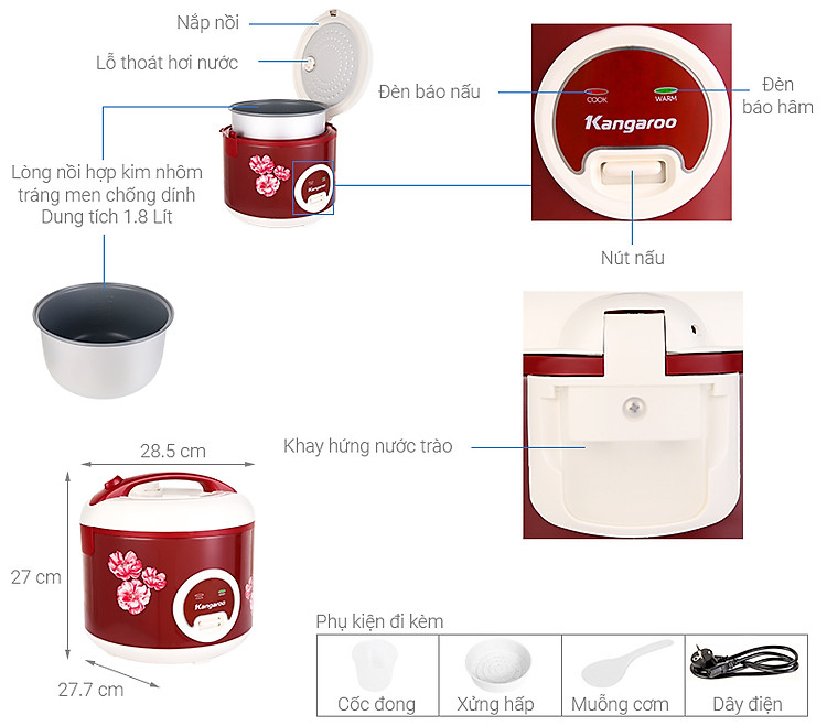 Thông số kỹ thuật Nồi cơm nắp gài Kangaroo KG378H 1.8 lít