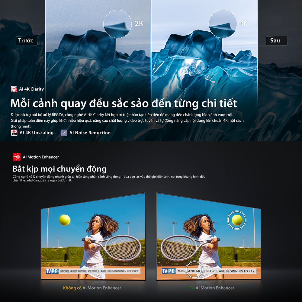 Công nghệ xử lý hình ảnh | Đồng bộ khung hình/tần số quét chơi game VRR, ALLM, AI Picture Optimizer, AI 4K Clarity, AI HDR Enhancer, AI Motion Enhancer, Game Deck |