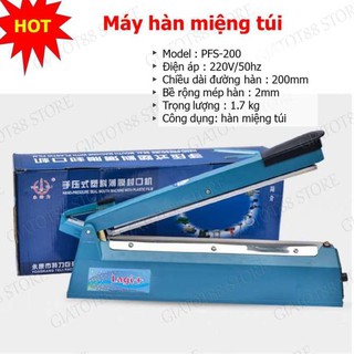 Máy hàn miệng túi nilon dập tay PFS chuyên dụng 200mm, hàng nội địa TQ, máy khỏe hàn túi zip, túi craft..