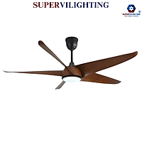 Quạt trần đèn 5 cánh động cơ Dc 6 cấp độ gió SuperVilighting Hàng chính hãng vân gỗ 999 điều khiển màu gỗ đen trắng
