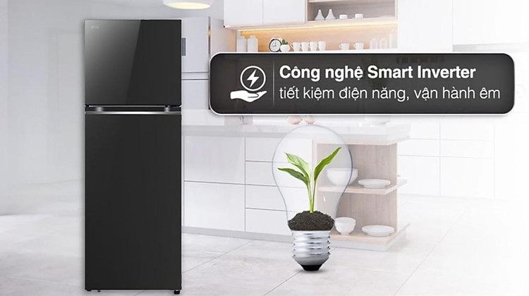 – Tủ lạnh LG sử dụng công nghệ tiết kiệm điện Smart Inverter giúp tiết kiệm điện năng hiệu quả, vận hành êm ái và kéo dài tuổi thọ máy nén.