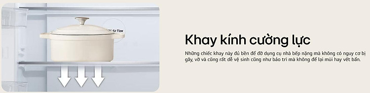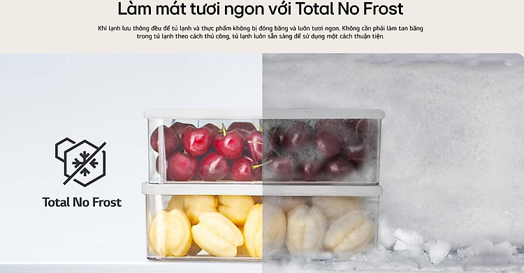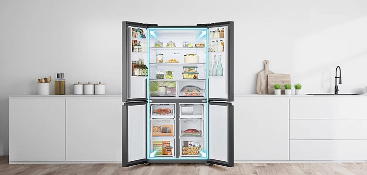 Dung tích bên trong lớn cho phép bạn lưu trữ nhiều loại thực phẩm khác nhau cùng một lúc, giúp xóa tan nỗi lo về vấn đề hết chỗ chứa trong tủ lạnh.