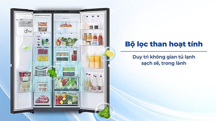 Bộ lọc than hoạt tính trên tủ lạnh LG có khả năng khử mùi mạnh mẽ. Hệ thống này hoạt động bằng cách hấp thụ và trung hòa các phần tử gây mùi, duy trì không gian bên trong tủ lạnh luôn trong lành và sạch sẽ. Nhờ vậy, thực phẩm không bị lẫn mùi, giữ được hương vị nguyên bản, mang lại sự an tâm tuyệt đối cho người sử dụng.
